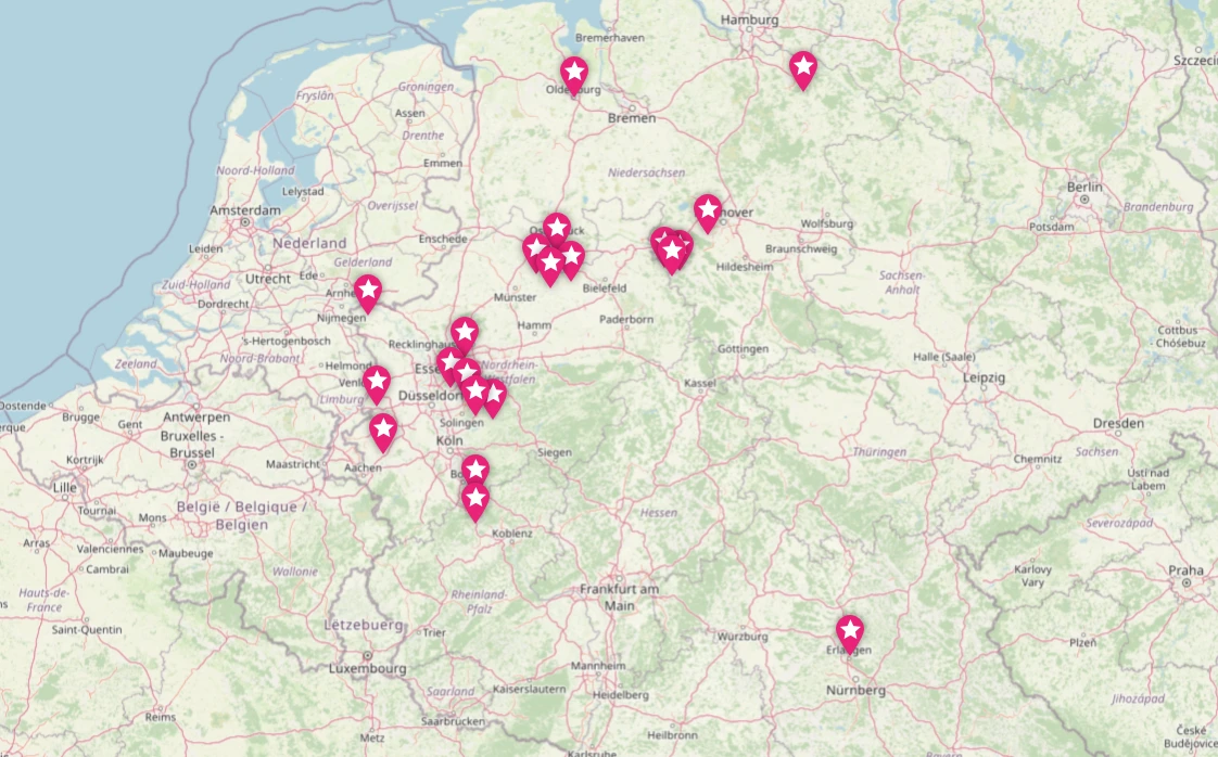 Unsere Mitglieder kommen hauptsächlich aus Nordrhein-Westfalen, Niedersachsen und Rheinland-Pfalz.